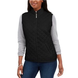 Karen Scott Sport Plus Size Thin Black Quilted Zip Up Layer Vest Women