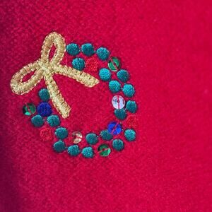 Karen Scott Sport VTG Red Christmas Cardigan Sweater Button Wool Embellished 1X