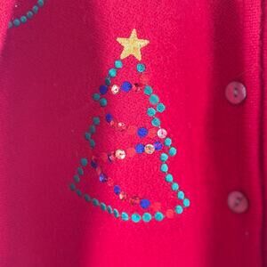 Karen Scott Sport VTG Red Christmas Cardigan Sweater Button Wool Embellished Size 1X