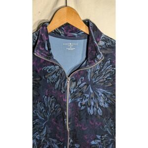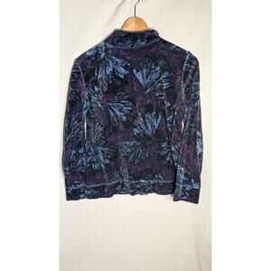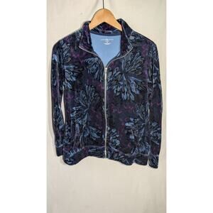 Karen Scott Sport Womens Dark Floral Velour Full Zip Track Jacket Sz M 90s Y2K