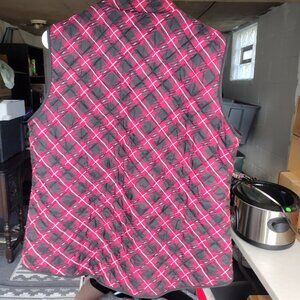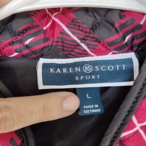 Karen Scott Sport Women's Large Plaid Quilted Red Black Puffer Vest