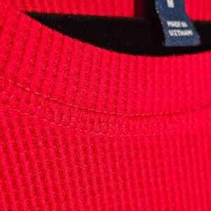 Crafted with breathable waffle knit fabric, this pullover offers comfort and casual style for everyday wear. Its vibrant red color adds a pop of energy to your wardrobe.