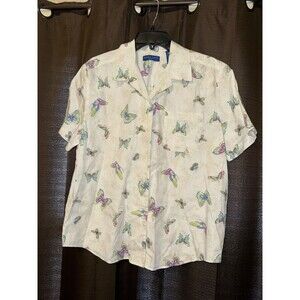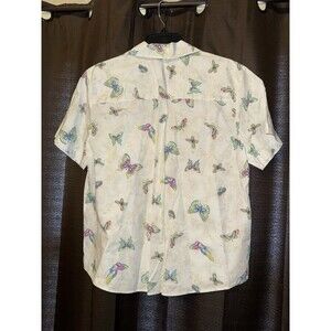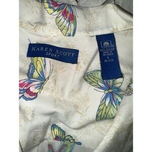 Karen Scott Sport Womens Short Sleeve Button Up Top Butterfly Size Large