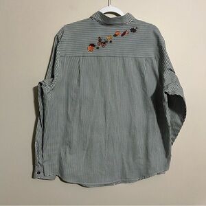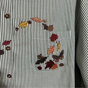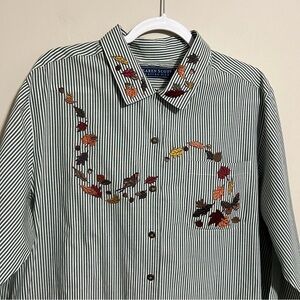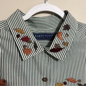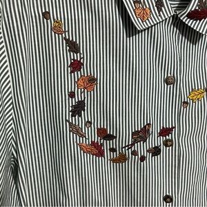 Karen Scott Striped Embroidered Fall Autumn Leaves Button Down Blouse size XL