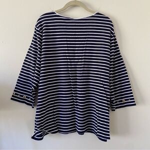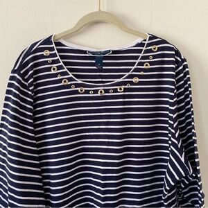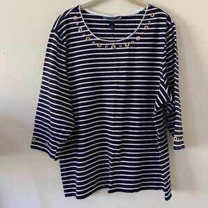 Karen Scott Striped Top with Rivet Detail Navy White Size 3x