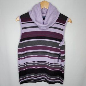 Karen Scott Striped Turtleneck Sleeveless Sweater Purple L
