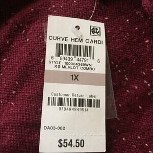 Karen Scott Sweater Burgundy Marled Cardigan-1X