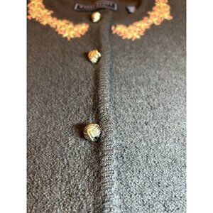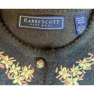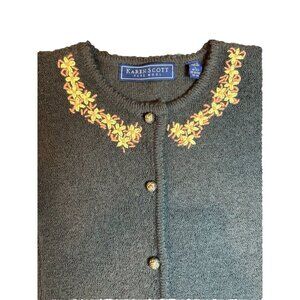 Karen Scott Sweater Button Up Embroidered Blue Wool Cardigan Women's Size Large