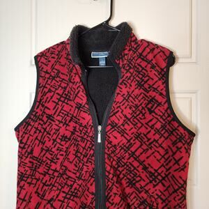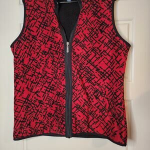 Karen Scott Sweater Vest Womens Large Red and Black Full Zip Thick Soft Layer