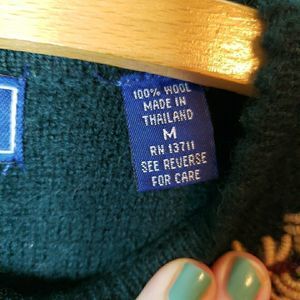 Karen Scott Sweater Womens Button Up Embroidered Wool Cardigan Green Size Medium