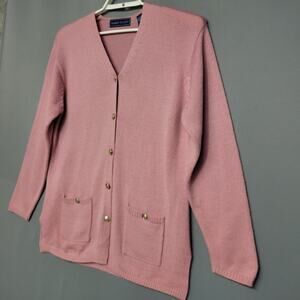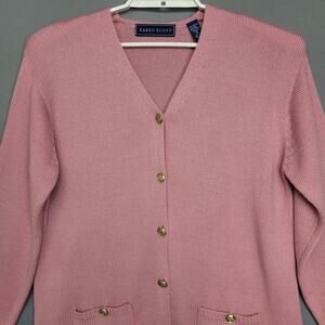 Karen Scott Sweater Women's Medium Pink Button Front Cardigan
