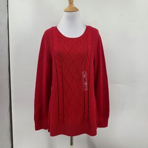Karen Scott Sweater Womens Medium Ruby Cable Knit Long Sleeve Crew Neck Pullover