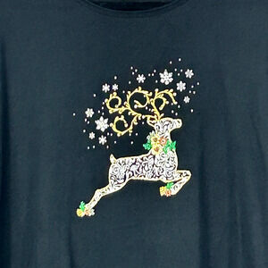 Karen Scott Sweater Women's XLarge Black Long Sleeve Reindeer Graphic Holiday