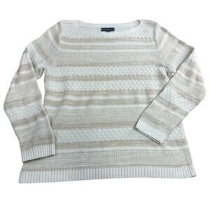 Karen Scott Tan Cable Knit Sweater Sz Large Pullover Boat Neck Long-Sleeve
