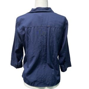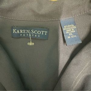 Karen Scott V Neck Shirts Long Sleeve Office Casual Business Plain Blouses Tops Size PL. The back has pleats. It’s perfect for office outfits. Very minimalist and comfortable. The condition is excellent.