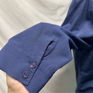 Features: office outfit, plain color office top, casual office outfit, navy blue top