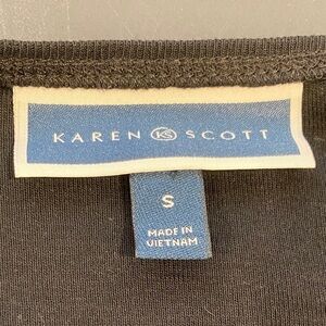 Karen Scott Valentines Black Top With Hearts And Glitter, Size Small, Candy Hearts With “Love You” and “Be Mine”, 3/4 Sleeve Shirt. Some stretch. Preowned. Nice condition. Underarm to underarm measures approx 18” across. Adorable top!