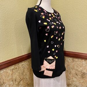 Karen Scott Valentines Black Top With Hearts And Glitter Size Small Candy Hearts