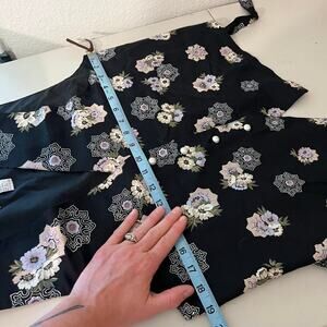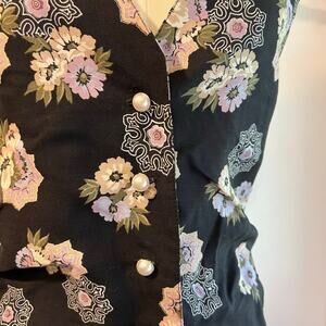 Karen Scott Vintage Black Floral Print Pearl Button Front Vest Top Size Small