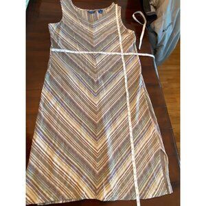 Karen Scott Vintage Womens Sleeveless Linen Blend V-Neck Midi Dress Size Large