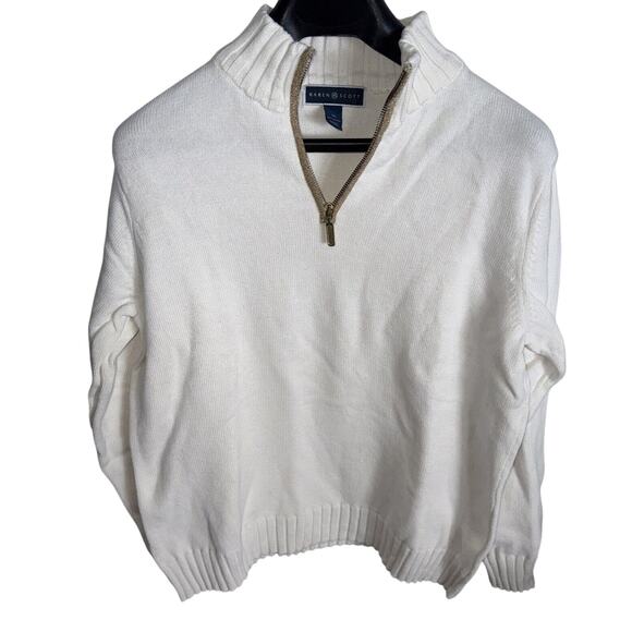 Karen Scott White Half-Zip Knit Sweater w/ Gold Zipper – Women’s XL