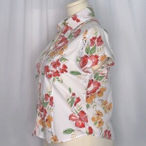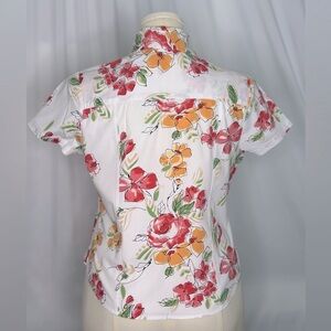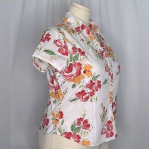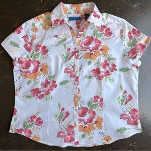 Karen Scott White Pink Short Sleeve Button Down Shirt (831)