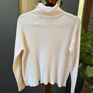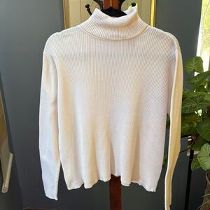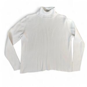 Karen Scott White Ribbed Turtleneck Sweater, Crisp Clean, Cotton Basic – Size M