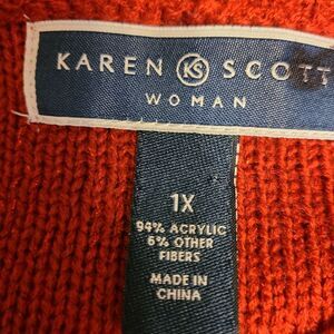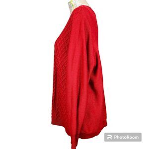 Karen Scott Woman Size 1X Red Sparkling Scoopneck Longline Cable Knit Sweater