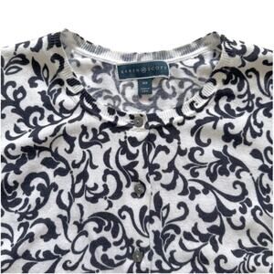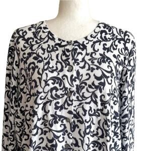 Karen Scott Woman White Blue Jacquard Scroll Print Cardigan Sweater Size 0X NEW