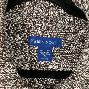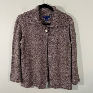 Karen Scott Women's Brown Space Knit One Button Collared Cardigan Size S