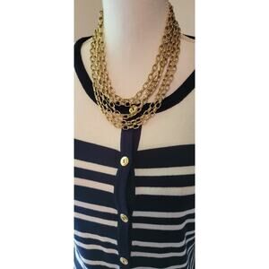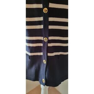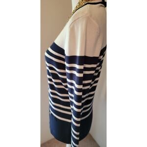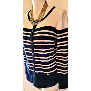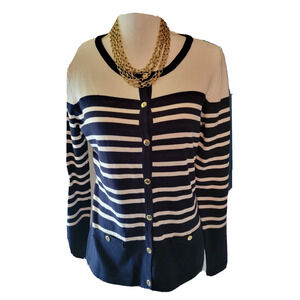 * Cute womens Karen Scott navy blue and white striped button up cardigan