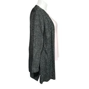 Cardigan Sweater Open Front Loose Knit Long Black Karen Scott