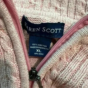 Karen Scott Womens Cozy Warm Pink Marled-Knit Quarter-Zip Sweater Size XL