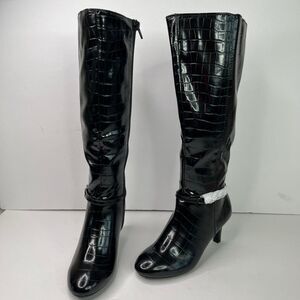 Karen Scott Womens Hannap Dressy Tall Mid-Calf Boots Black Croco 5M #601