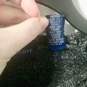 Karen Scott brand. Women's large. Vintage. Gray with white specks long sleeve pullover knit sweater. Crew neck; ribbed throughout, but larger ribbed edging along neckline, wrist cuffs, and bottom hem. Slit along bottom hem at waist. In preloved condition (see photos for condition, if applicable); as with any preowned clothes, you should wash before wearing the first time. Made of 100% acrylic. From a pet friendly home.