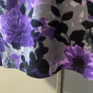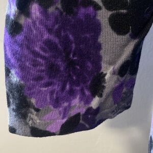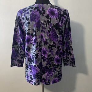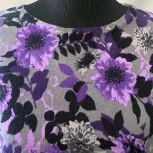 Karen Scott Women’s Lightweight Floral Sweater 3/4 sleeves. Purples, grays and black. Sz PL. Measured down center back 24”. Clean nice condition.