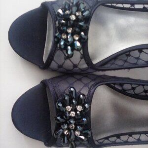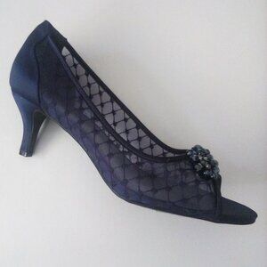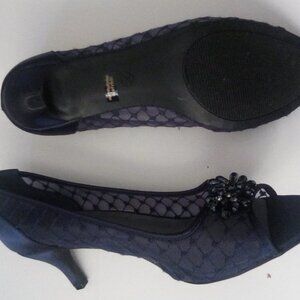 Karen Scott Womens Mesh Navy Embellished Peep Toe Kitten Heels MARALYN Size 10.5