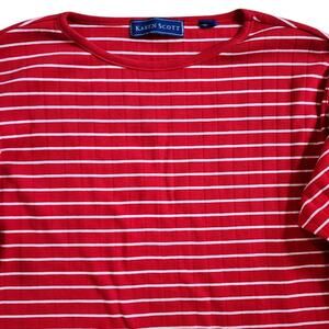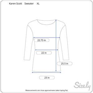 This Karen Scott Women's Pullover Sweater in size XL features a red and white striped pattern in a tight-knit fabric. This 3/4 sleeve sweater has a round neckline and is designed for casual occasions. The regular fit and all seasons features make it a versatile and stylish addition to any woman's wardrobe. Gently used condition with normal wash wear such as pilling or pre-pilling and the size/fabric tag has been cut out so please see all photos for details, measurements.