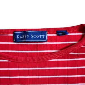 Karen Scott Womens Pullover Sweater Size XL Red White Striped 3/4 Sleeve