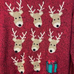 Adorable not so ugly reindeer Christmas sweater from Karen Scott. Reindeers have pom pom noses. In good used condition. Mild piling.