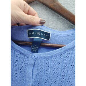 Karen Scott Womens S Periwinkle Cardigan Sweater Knit Button Front