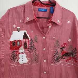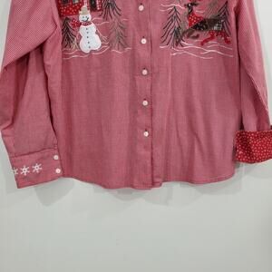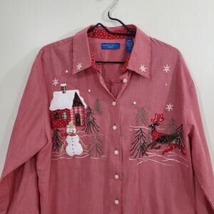 Karen Scott Women's Sport Button Up Christmas Long Sleeve Red White Size XL