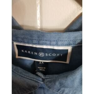Karen Scott Women's Sz 2X Blue Chambray 1/4 Button Pop Over Shirt Dress 100%...