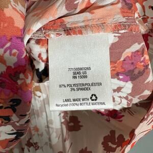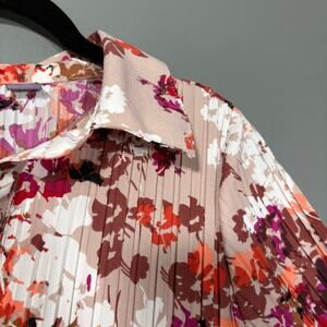 Karen Scott Women's Tan, Pink & Red Floral Pleated Button Up Top - Size Large