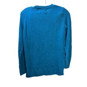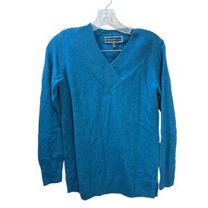 A cozy and stylish addition to your wardrobe, featuring a V-neck design and an eye-catching teal color. This sweater offers comfort and warmth, perfect for layering during cooler seasons. Crafted with quality materials, it provides both durability and a soft feel against the skin.