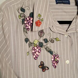 Karen Scott XL Women's Long Sleeve Button-Down Shirt Fruit & Butterflies