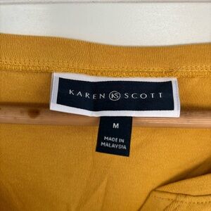 This vibrant yellow blouse from Karen Scott features a lightweight fabric that drapes beautifully for a flattering silhouette. Ideal for both casual and semi-formal occasions, it adds a pop of color to any outfit.