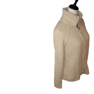 Karen Scott Zip Front Cardigan/Turtle Neck Beige Sweater Size Medium