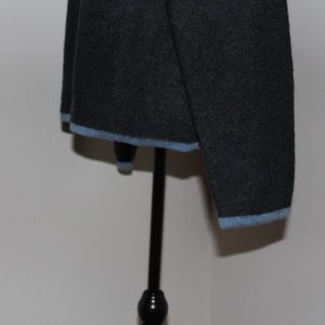 Karen Scott, dark grey - baby blue embroidered full zip up wool cardigan sweater