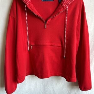 Karen Scott gorgeous coral hoodie with striped inner hood and drawstring, size L
